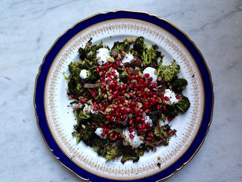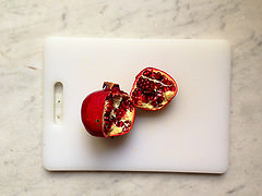 6. Wipe out the saute pan you used for the onions, place it over high heat, and toast the walnuts in the pan for a few minutes, watching carefully so the don't burn. Pour the toasted walnuts over the broccoli, top with the pomegranates, and sprinkle the whole dish with some more salt and chile flakes. Serve warm or at room temperature.